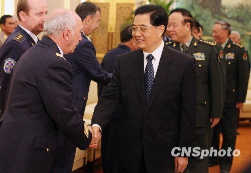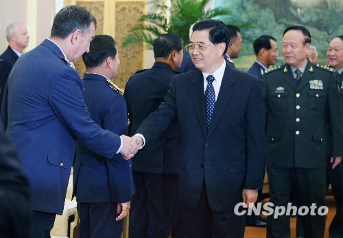 圖:國家主席胡錦濤會(huì)見各國空軍代表團(tuán)