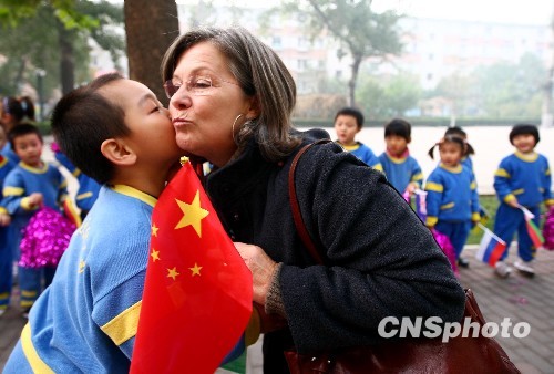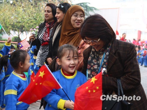 圖:各國空軍代表團(tuán)隨行夫人參觀藍(lán)天幼兒園(2)
