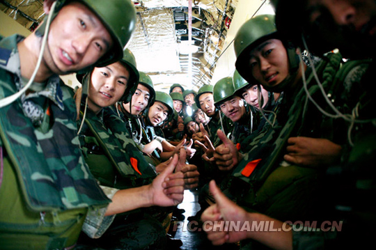 中國空軍舉行紀(jì)念建軍六十周年飛行、跳傘預(yù)演(5)