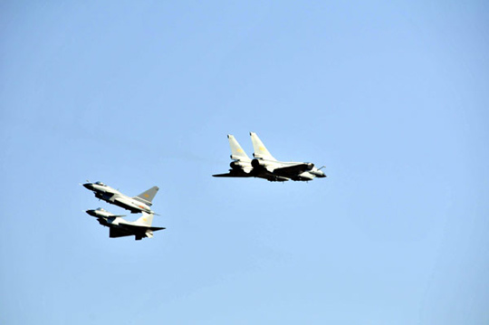 空軍成立60周年紀(jì)念日進(jìn)行首場飛行表演訓(xùn)練(4)