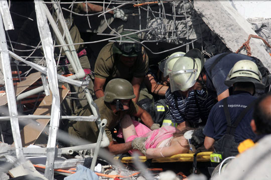 圖:智利強(qiáng)烈地震 救援隊廢墟中搜救幸存者(2)
