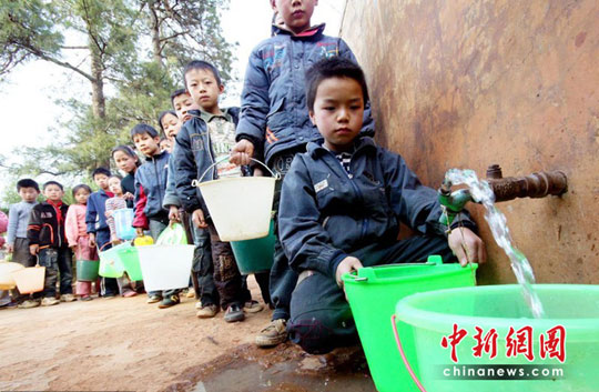 圖:西南大旱持續(xù) 娃娃參與“送水”
