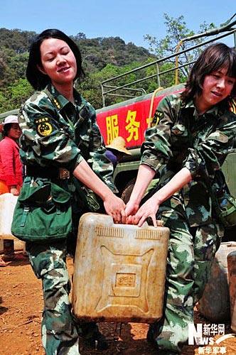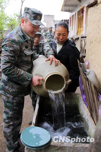 圖:空軍駐滇某部送水進(jìn)村潤(rùn)民心