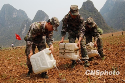 圖:解放軍出動(dòng)抗旱 軍隊(duì)為民眾澆灌禾苗