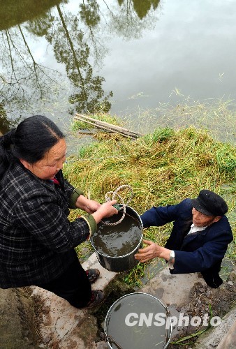 圖:四川攀枝花旱區(qū)村民尋找新水源打水