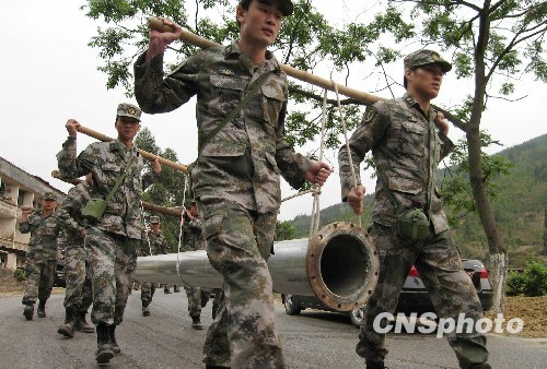 圖:抗旱突擊隊(duì)鋪設(shè)輸水管線
