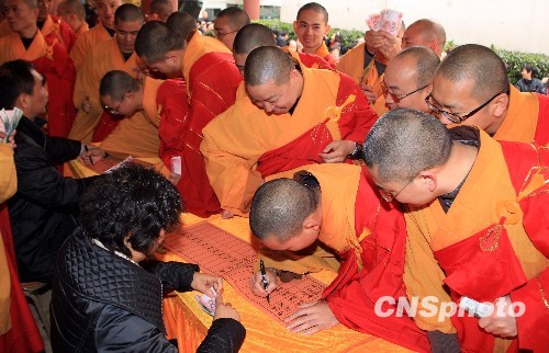 圖:拉薩哲蚌寺為中國(guó)西南旱災(zāi)地區(qū)捐款