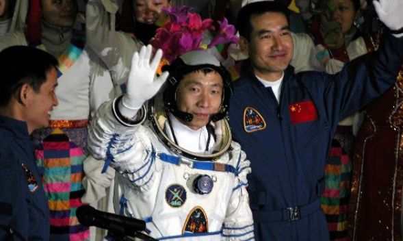 2003年10月15日9分50秒,楊利偉乘坐我國自行研制的“神舟”五號載人飛船在酒泉衛(wèi)星發(fā)射中心發(fā)射升空后,準確進入預定軌道。這是中國首次進行載人航天飛行。經(jīng)過21小時23分、60萬公里的安全飛行后,他于16日6時23分在內蒙古主著陸場成功著陸返回。>>