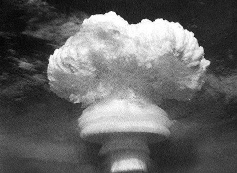 氫彈爆炸時(shí),作為引爆裝置的原子彈首先爆炸,產(chǎn)生數(shù)千萬度高溫,促使氘氚等輕核急劇聚變,放出巨大能量,形成更猛烈的爆炸。