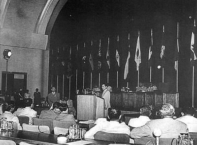 1955年4月17日,由國(guó)務(wù)院總理兼外交部長(zhǎng)周恩來(lái)率領(lǐng)的中國(guó)代表團(tuán)抵達(dá)萬(wàn)隆,出席從4月18日至24日舉行的、有29個(gè)國(guó)家參加的亞非會(huì)議。4月19日,周恩來(lái)先后在全體會(huì)議上作了發(fā)言和補(bǔ)充發(fā)言,提出了“求同存異”方針。他說(shuō),根據(jù)互相尊重主權(quán)和領(lǐng)土完整、互不侵犯、互不干涉內(nèi)政、平等互利的原則,社會(huì)制度不同的國(guó)家是可以實(shí)現(xiàn)和平共處。過(guò)去殖民統(tǒng)治在亞非國(guó)家間所造成的不和和隔閡,不應(yīng)該繼續(xù)存在。我們應(yīng)該互相尊重,消除互相間可能存在的疑慮和恐懼。他還說(shuō),中國(guó)代表團(tuán)是來(lái)求團(tuán)結(jié)而不是來(lái)吵架的。是來(lái)求同而不是來(lái)立異的,我們的會(huì)議應(yīng)該求同存異,同時(shí)會(huì)議應(yīng)將這些共同愿望和要求肯定下來(lái)。這是我們中間的主要問(wèn)題。4月24日,在與會(huì)各國(guó)代表團(tuán)的努力下,通過(guò)了《亞非會(huì)議最后公報(bào)》。公報(bào)提出,尊重基本人權(quán)、尊重聯(lián)合國(guó)憲章的宗旨和原則,尊重一切國(guó)家的主權(quán)和領(lǐng)土完整;承認(rèn)一切種族的平等,承認(rèn)一切大小國(guó)家的平等;不干預(yù)或干涉他國(guó)內(nèi)政等10項(xiàng)原則。
