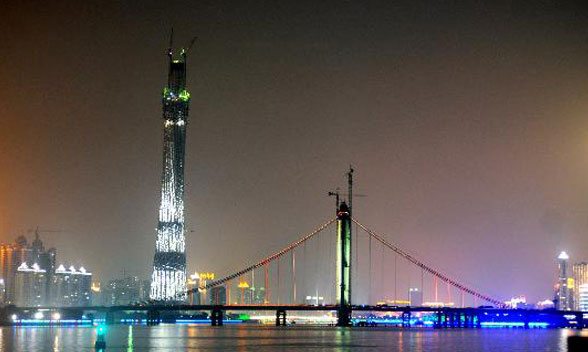 廣州電視觀光塔(又稱廣州塔、廣州新電視塔),建于廣州市海珠區(qū)赤崗塔附近地面,距離珠江南岸125米,與海心沙島及廣州新電視塔夜景珠江新城隔江相望。是一座以觀光旅游為主,具有廣播電視發(fā)射、文化娛樂和城市窗口功能的大型城市基礎(chǔ)設(shè)施,將為2010年在廣州召開的第十六屆亞洲運動會提供轉(zhuǎn)播服務(wù)。該塔仍然在建,由上海建工集團(tuán)負(fù)責(zé)施工,預(yù)計2009年9月竣工?⒐ず蟮膹V州電視觀光塔整體高度達(dá)到610米,將取代加拿大的西恩塔成為世界第一高塔,也將成為廣州的新地標(biāo)。其中塔身主體454米,天線桅桿156米。
