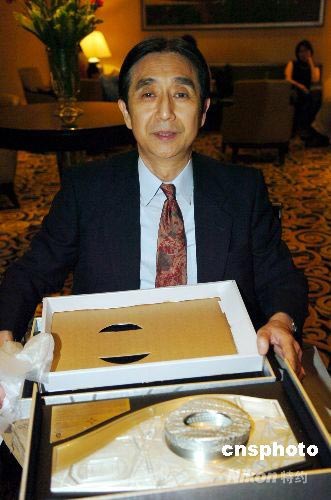 日本友人展示胡錦濤贈(zèng)予的鳥(niǎo)巢模型