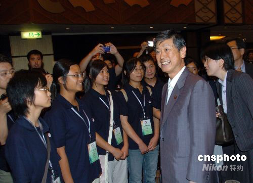 圖:日外務大臣慰問四川地震災區(qū)訪日青年