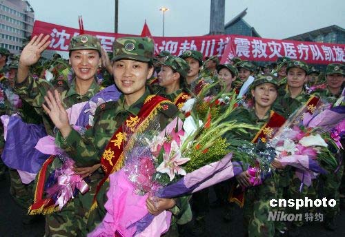 圖:沈陽軍區(qū)抗震救災醫(yī)療隊返沈