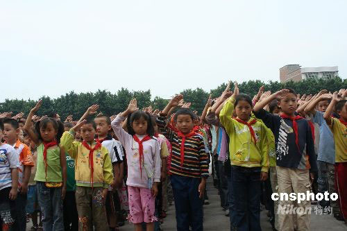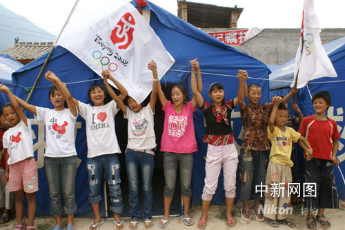 圖:重災區(qū)孩子們用歌聲祝福奧運平安