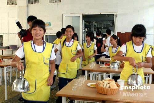 中國地震災區(qū)孩子在俄羅斯客串“服務員”