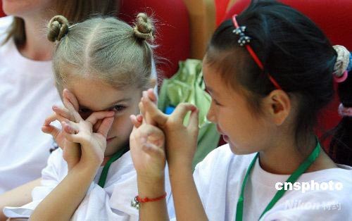 地震災區(qū)兒童與外國兒童歡聚"心連心夏令營"