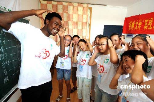 圖:大學(xué)外教為地震災(zāi)區(qū)孩子授課