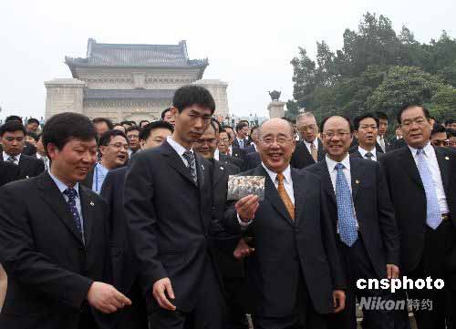圖:吳伯雄南京中山陵向周圍民眾揮手致意