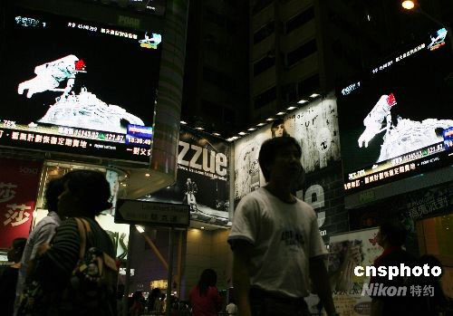 中國人首次太空行走 香港市民通過街頭大屏幕關(guān)注