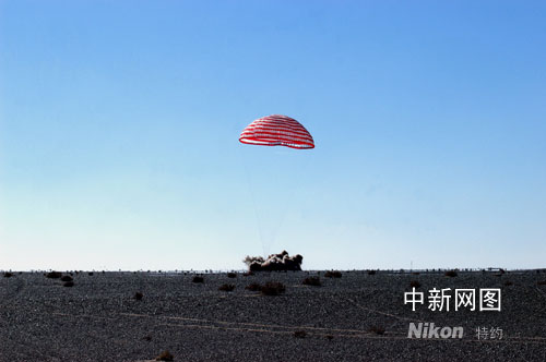 圖:神七返回艙成功著陸