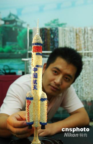 圖:500余萬顆珍珠打造珍珠版“神七”