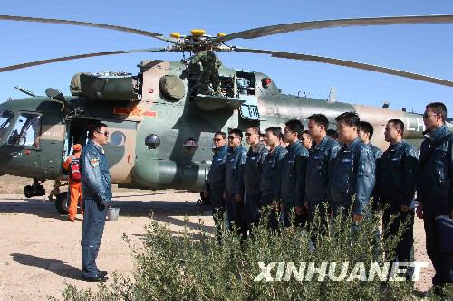 圖:"神七"返回艙搜救任務(wù)人員進(jìn)行最后演練