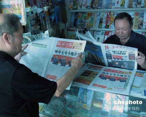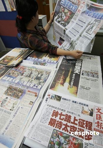 圖:香港各大報章大幅報道“神舟七號”