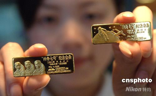 圖:“神舟七號”紀(jì)念金條在北京發(fā)行