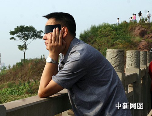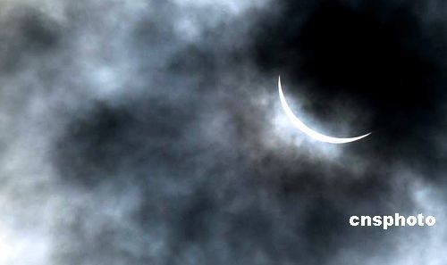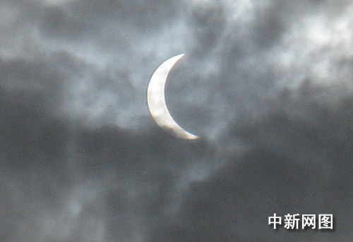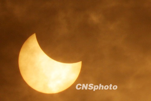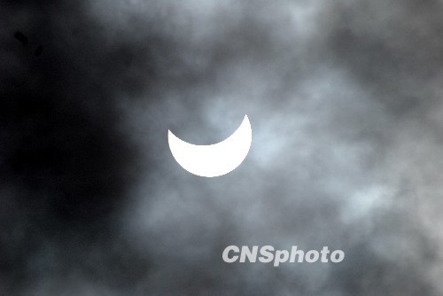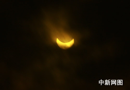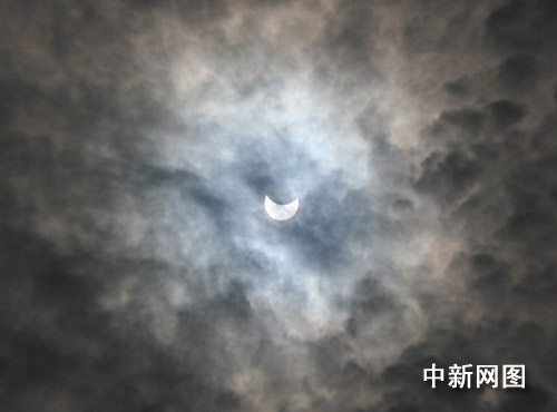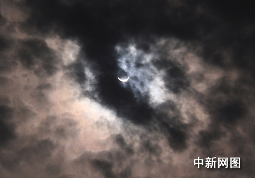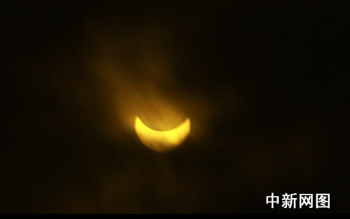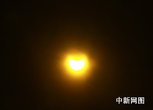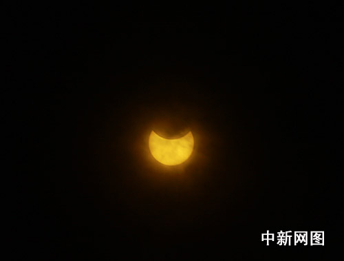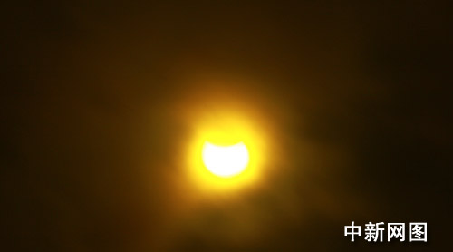 圖:“大日食”如約光臨重慶 當?shù)厥忻衤N首觀看(2)