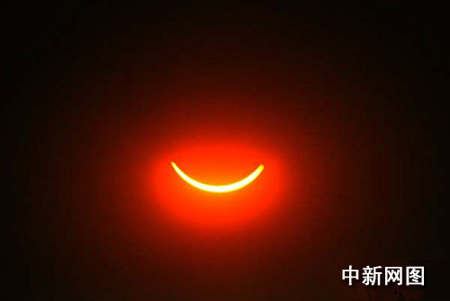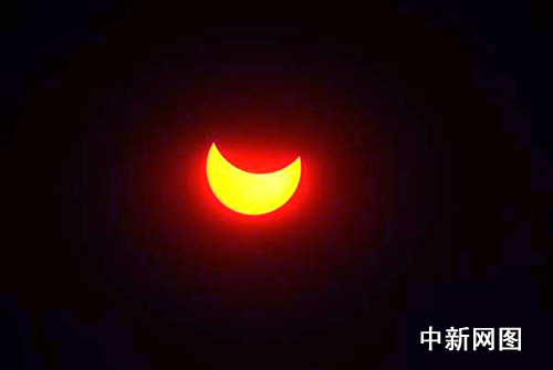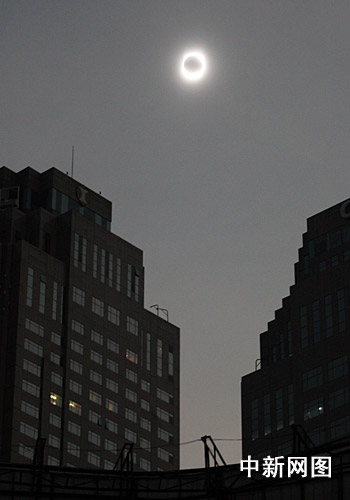 圖:日全食“食既” 重慶白晝?nèi)缫?/a>