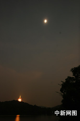 圖:日全食美景照亮杭州西湖(4)