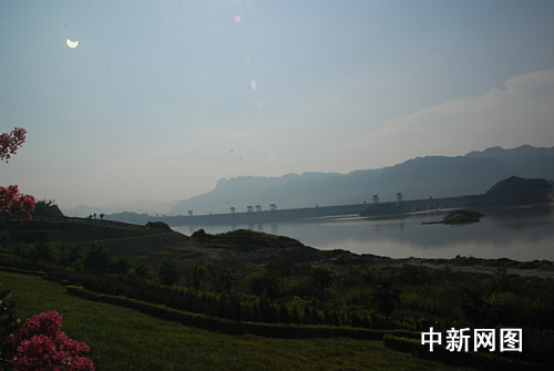 圖:應對日全食 三峽大壩、副壩亮燈