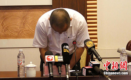 圖:河南航空公司監(jiān)事會主席鞠躬致歉