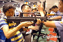 圖:杭州市民展會(huì)上體驗(yàn)警用槍支