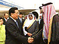 胡錦濤在曼谷出席APEC領(lǐng)導(dǎo)人非正式會議期間與布什會晤。