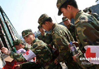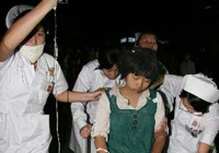 醫(yī)務(wù)工作者救助來自都江堰地震傷員