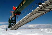 從驚雷翻滾的風火山口,到夏日飛雪的唐古拉山巔,穿過神秘的可可西里無人區(qū),到達圣潔的布達拉宮,一條“鋼鐵天路”綿延1000多公里,在這片曾經(jīng)人跡罕至的雪域高原上架起又一條惠澤青藏人民的生命線。 青藏鐵路是中國繼三峽工程之后最受世界注目的一項重大工程,也是人類鐵路建設史上最宏偉的工程。它全長1900多公里,是世界上海拔最高、線路最長的高原鐵路。青藏鐵路的全線貫通,意味著西藏終于結(jié)束了沒有鐵路的歷史。在被稱為“人類生命的禁區(qū)”的地方鋪設青藏鐵路,像是在鋪設一條“天路”,需要強大的科技實力作基礎,需要強大的精神支柱作支撐。青藏鐵路的建設者們靠著這種精神所產(chǎn)生的不竭動力,創(chuàng)造出了人間不曾想像的一項項奇跡。<專題:青藏鐵路7月1日全線通車>