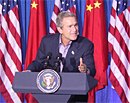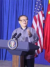 10月10日,中國外交部發(fā)言人章啟月在例行記者招待會(huì)上宣布,應(yīng)美國總統(tǒng)布什的邀請,中國國家主席江澤民將于10月22日至25日訪問美國。訪美結(jié)束后,江澤民將于26日至27日出席在墨西哥舉行的亞太經(jīng)合組織(APEC)第十次領(lǐng)導(dǎo)人非正式會(huì)議。