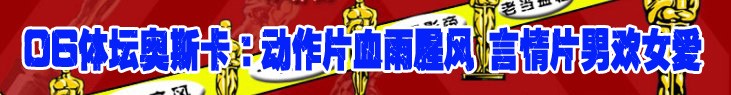 最佳紀錄片:退役明星《王的男人》 最佳影片:退役明星《王的男人》 終身成就獎:退役明星 頒獎詞:當2006年的秒針走向最后一刻時,在我們記憶里揮不去的是那些王者的背影。“車王”舒馬赫將風中的紅色身影收起,“球王”齊達內(nèi)停下曼妙的舞步,網(wǎng)球之王阿加西最后一次把親吻獻給觀眾,“大腳王子”索普再也劈不開綠池的碧波……再見了,我們的王者、我們的神,我們會懷念那些你們帶來的難忘歲月,深鎖住你們鑄就的傳奇故事。就算是卡特里娜颶風也帶不走腦中的思緒,就算是印度洋海嘯也沖不掉心中的悸動。 在新年的鐘聲敲響時,讓我們帶著崇敬的心情向那些曾給我們無數(shù)感動的人道別:再見了,王者! |