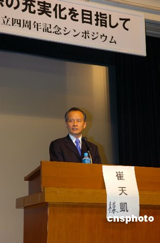 11月2日下午,日本華人教授協(xié)會(huì)在東京朝日禮堂舉行創(chuàng)建四周年研討會(huì),中國(guó)駐日使館崔天凱大使出席并發(fā)表基調(diào)演講,來(lái)自日本政界、商界、學(xué)術(shù)界、中國(guó)駐日使館以及當(dāng)?shù)孛襟w相關(guān)人士近400人參加。此次研討會(huì)的主題為“進(jìn)一步充實(shí)中日戰(zhàn)略互惠關(guān)系”。與會(huì)專家從政治外交、經(jīng)濟(jì)金融、科學(xué)技術(shù)和文化教育領(lǐng)域就研討會(huì)的主題進(jìn)行了探討。在基調(diào)演講中,崔天凱大使就當(dāng)前中日關(guān)系的發(fā)展提出幾點(diǎn)意見。中新社發(fā) 滕劍峰 攝