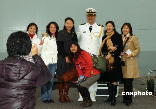 11月28日下午,抵達(dá)日本進(jìn)行正式友好訪問(wèn)的中國(guó)海軍導(dǎo)彈驅(qū)逐艦“深圳號(hào)”,邀請(qǐng)旅日華僑華人留學(xué)生代表與日本民眾上艦參觀,年輕女性參觀者紛紛與英俊帥氣的中國(guó)海軍兵哥合影。中新社發(fā) 滕劍峰 攝