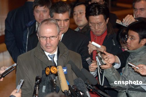 十二月五日,美國助理國務(wù)卿希爾結(jié)束對朝鮮的訪問抵達(dá)北京,在其下榻的酒店接受記者采訪。中新社發(fā) 廖攀 攝