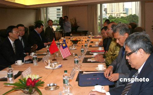 十二月八日傍晚,中國外長楊潔篪(左一)同馬來西亞外長賽義德在吉隆坡東方文華酒店舉行會談,雙方討論了雙邊關(guān)系和共同關(guān)心的國際和地區(qū)問題,就兩國今后合作達成多項共識。中新社發(fā) 蘇祥新 攝