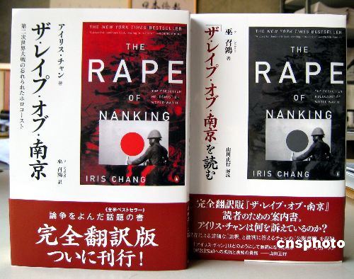 在“南京大屠殺”事件70周年之際,美籍華裔女作家張純?nèi)绲臍v史著作《南京大屠殺》日文譯本終于在日本出版發(fā)行。該書(shū)由在日華僑巫召鴻翻譯、日本同時(shí)代社出版。除了張純?nèi)缭g本以外,《解讀<南京大屠殺>》同時(shí)出版,詳細(xì)介紹了《南京大屠殺》日文版歷經(jīng)10年才得以面世的經(jīng)過(guò)。中新社發(fā) 段躍中 攝