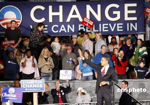 美國愛荷華州1月3日拉開2008年大選初選的序幕,人氣正旺的民主黨參選人奧巴馬,2日在艾奧瓦州西達拉皮茲市爭取選民支持。中新社發(fā) 李靜 攝
