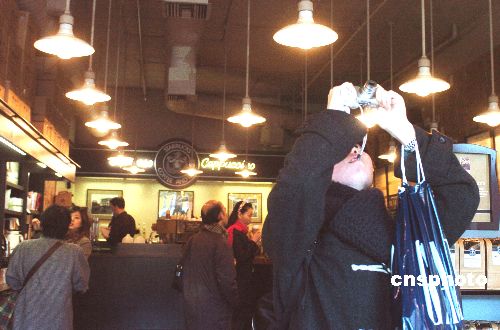 圖:華人華僑樂(lè)逛星巴克第一家咖啡店