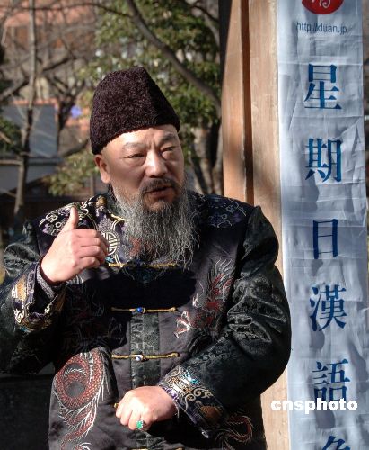 1月27日,東京星期日漢語(yǔ)角舉行第24次交流會(huì),邀請(qǐng)正在日本訪問的中國(guó)著名國(guó)畫大師安云霽教授進(jìn)行演講和座談。安云霽不僅介紹了中國(guó)的文化藝術(shù),還就中日文化交流、北京奧運(yùn)會(huì)等話題進(jìn)行了深入淺出的演講。安云霽的滿口京腔以及充滿中華民族色彩的服裝,吸引了參加漢語(yǔ)角的日本朋友,多次贏得熱烈的鐘掌聲。中新社發(fā) 段躍中 攝