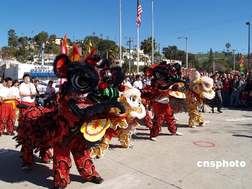 當(dāng)?shù)貢r(shí)間2月7日,大年初一清早,洛杉磯中國城越華會(huì)僑團(tuán)舉行新年團(tuán)拜,并以舞獅舞龍,燃放爆竹拉開新春第一天序幕,吸引上千來自越南的華人華僑共襄盛舉。中新社發(fā) 盧威 攝