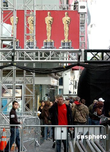 當(dāng)?shù)貢r(shí)間二月二十一日,美國(guó)洛杉磯好萊塢星光大道已經(jīng)封鎖主要道路,為二月二十四日舉行美國(guó)第八十屆電影奧斯卡頒獎(jiǎng)典禮作準(zhǔn)備。中新社發(fā) 賈國(guó)榮 攝